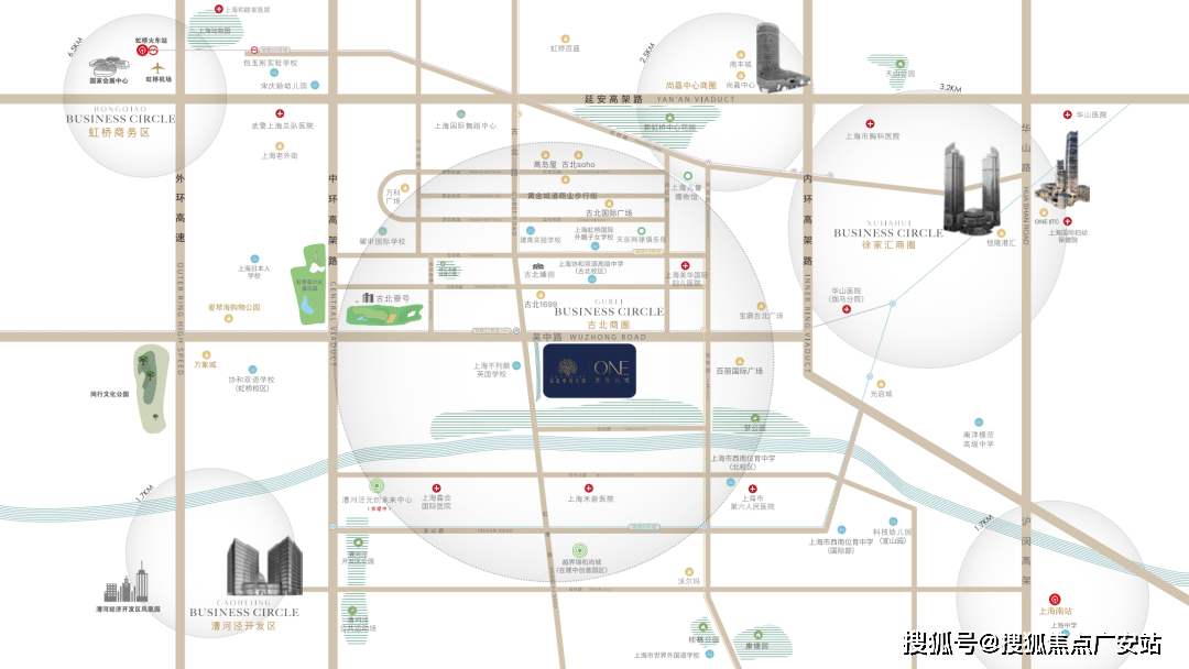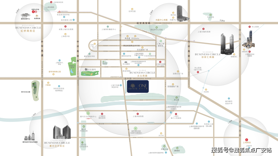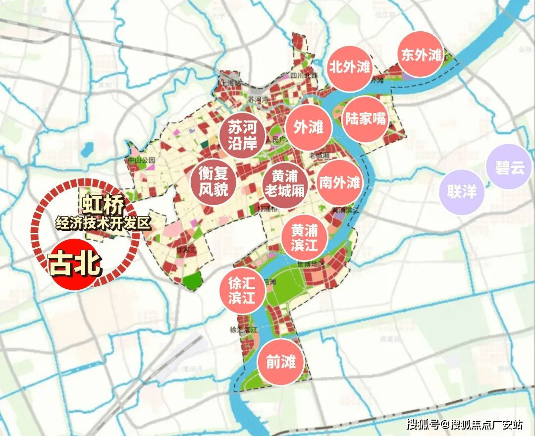 古北地处内中环间,付与古北更高的街区质量。虹桥-古北被划入地方勾当区,