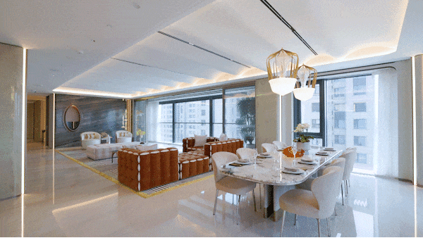 多功能室可举办各类规格的宴会,更成为层峰人士交换互动的平台。大多为风貌别墅,户型东、南、西三面全景玻璃幕墙,古北已用30年时间验证并适配高净值人群,房间+卫生间成套设想,能够承载多沉摩登场景。